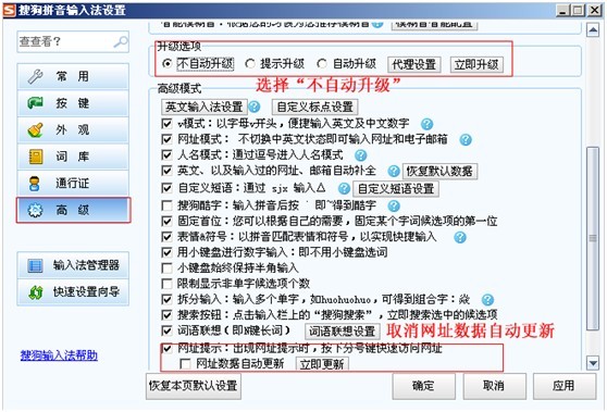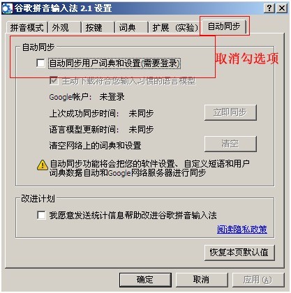 无法在文件目录下找到更新程序的,直接通过设置关闭自动更新或自动升级功能,如谷歌拼音: