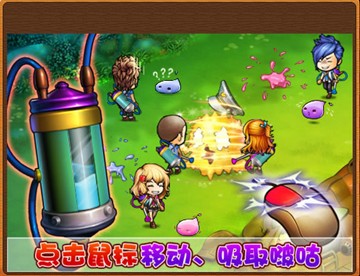 首先是这种可爱的小啵咕,他们很弱小。追上他们并使用吸收器,就可以直接将他们抓住了。