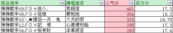 恭喜我们的【弹弹歌手09∥G+迷亽.】荣获弹弹人气K歌王,【弹弹歌手03╲★情侣—月 兔】荣获 弹弹实力K歌王!恭喜这两位获得幸运四叶草指环+2(7天)×2,祝福之握+2(7天)×2,双倍经验卡(7天)×1,双倍功勋卡(7天)×1,5000礼金