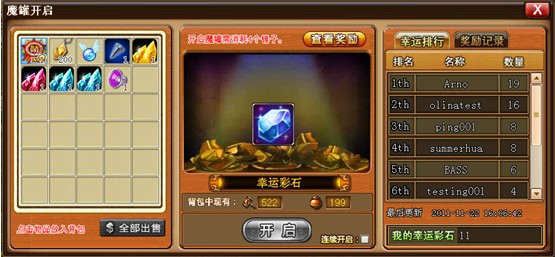 活动期间,打开天使魔罐就有几率得到幸运彩石。幸运彩石即时记录在“我的幸运彩石“栏中,不会在背包里出现。