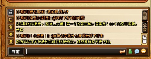 活动规则:在活动时间内,GM将通过系统公告发出一条问题(问题囊括百科知识、脑筋急转弯、弹弹堂相关知识等),抢答活动将开展三场,最先通过私聊方式将正确答案告知is弹弹堂GM002 的玩家将获得一个珍贵7.0测试激活码。激活码当场GM就会通过邮件形式返还。