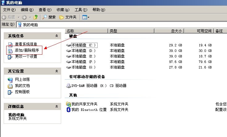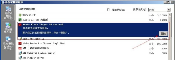 打开我的电脑->选择添加删除程序(图1)->选择flash删除(图2)