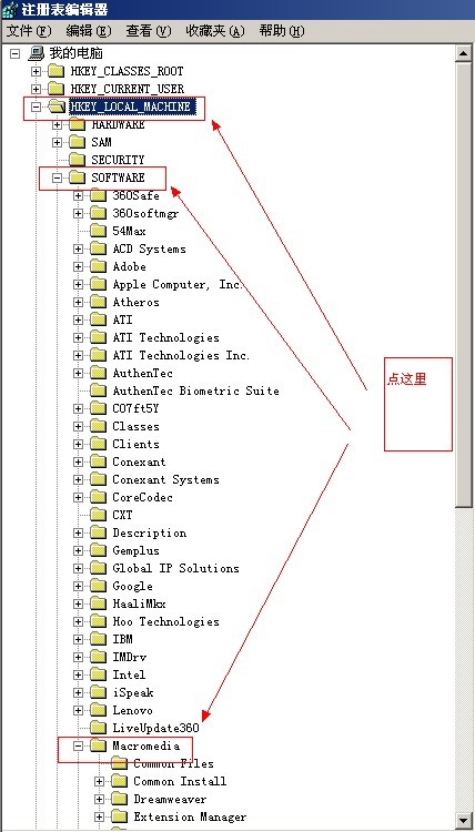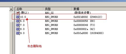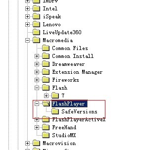 开始->运行->输入 regedit(图3)->选择 HKEY_LOCAL_MACHINE(图4)->选择 SOFTWARE(图4)->选择 Macromedia(图4)->选择 FlashPlay(图5)->选择 SafeVersions (图5)->右击删除右边的10.0的项目(图6)