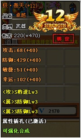 如图所示,12级的强化将开放传说中的第四个插孔,无疑于让您的装备“如虎添翼”。另外,《弹弹堂》的强化成功率也将会在2.3版本中有所调整,玩家很快就能感受强12的王者风范、体验横扫战场的快感,阳光7月精彩无限,就让 2.3版《弹弹堂》与您一起开创竞技新格局吧!