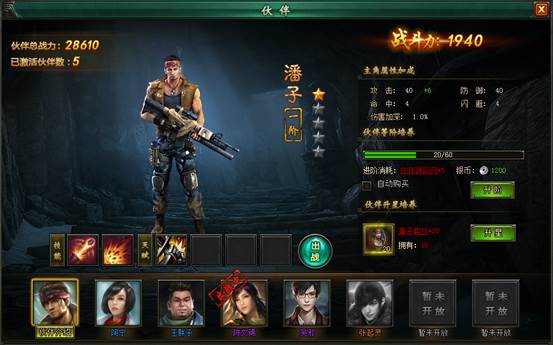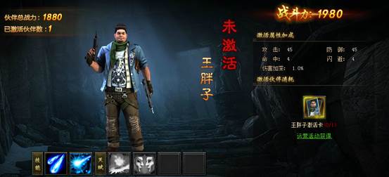 角色到19级,完成主线任务后可以开启伙伴系统,同时将获得大量伙伴属性加成和战力加成。第一位伙伴是潘子,退伍军人硬汉子!