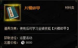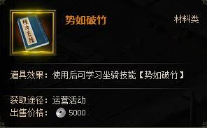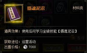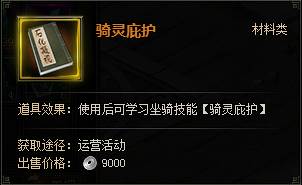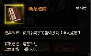 坐骑技能可以通过“坐骑技能书”增加其等级;