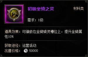 初级坐骑之灵 | 等阶加成的属性提升10% |