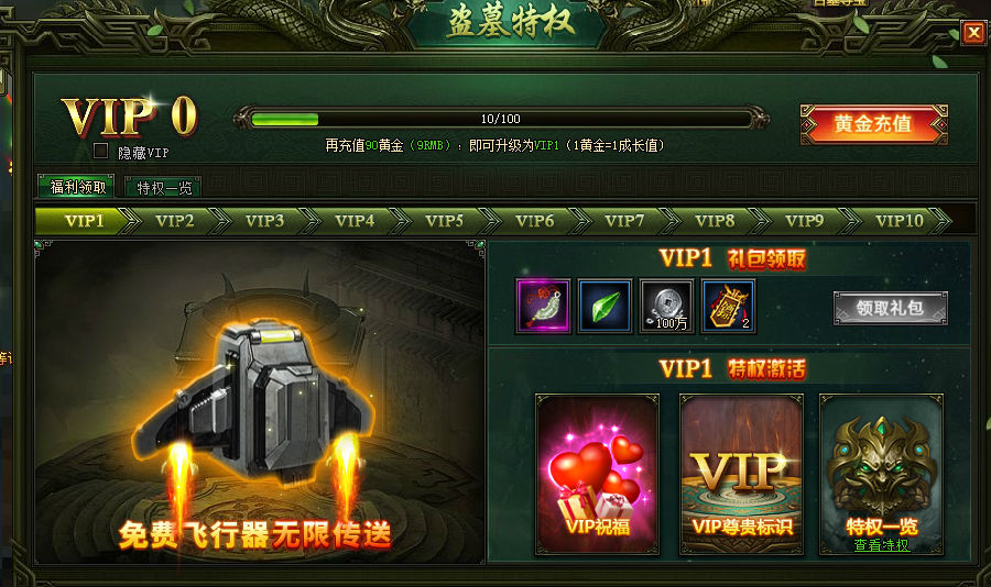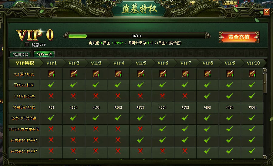 3. 升级到不同VIP等级需要的元宝数量不同。点击【充值】按钮即可进行充值