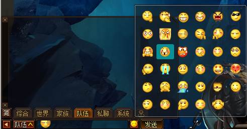 输入框内可使用表情,上方可选择频道,输入完内容后按enter键或鼠标点击发送按钮可发送信息