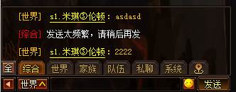 聊天系统包括综合频道,世界频道,家族频道,队伍频道,私聊频道和系统频道。