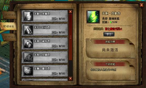 被动技能可以增加人物的基础属性,比如生命,攻击,防御等,需要使用技能书才可以学习。