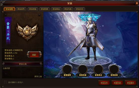 家族中有家族技能,家族商店,家族勋章等功能