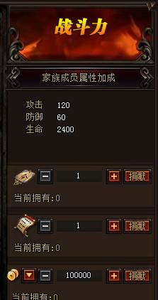 玩家可以通过捐献道具或者金币来提升家族贡献度,升级家族勋章来获得属性加成。