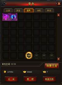 玩家在背包中往往因为东西过去而找不到自己想要找的东西,背包分类可以帮助玩家解决这个问题,背包中,有全部,装备,道具,消耗,其他这5个分类,每个分类只会显示当前分类的东西。