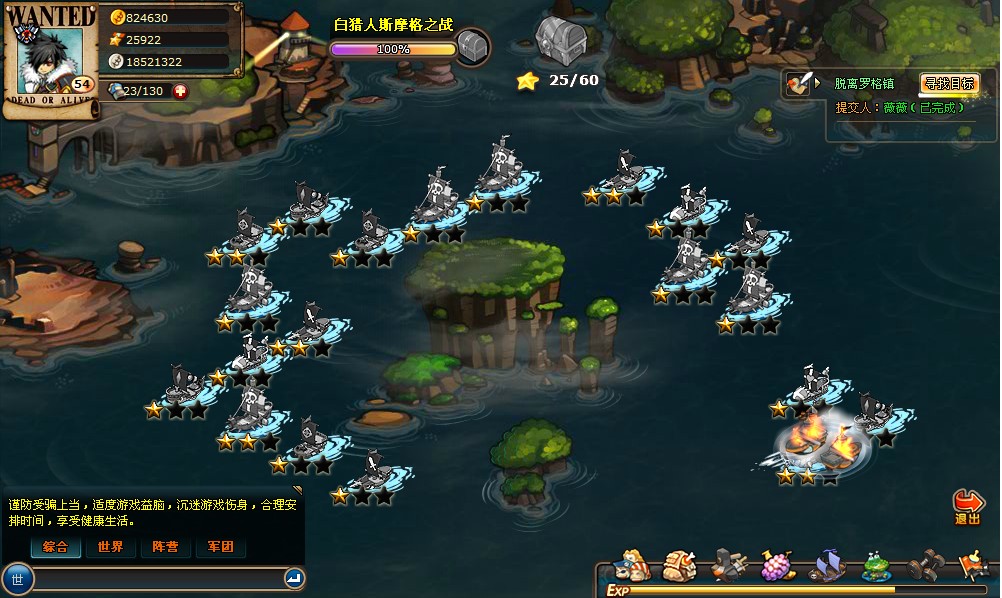 在IS《小小海贼王》中玩家通过场景传送点可进入本场景的区域战役地图,选择相应的战役即可进入战役地图。在战役地图中,玩家通过点击需要攻击的海贼团,进入单人战斗界面进行战斗,或通过组队界面进入组队战斗模式,与其他玩家一同进入多人战斗,相互协助通关战役图。战役图在游戏内的作用:威望获得,游戏币获得,经验获得,高品质装备获得。