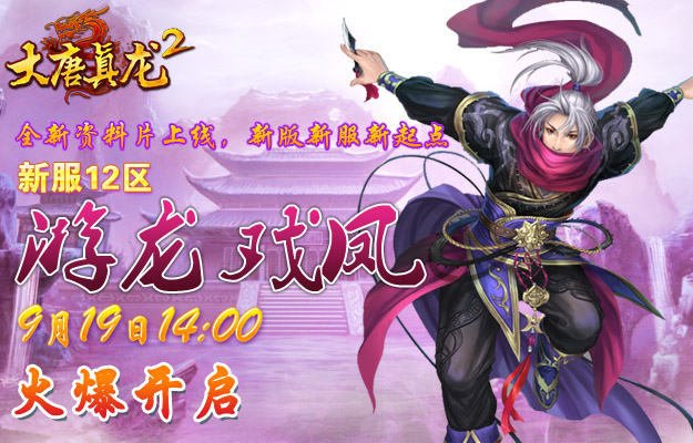 IS《大唐真龙贰》双线12服“游龙戏凤”2012年9月19日14:00火爆开启!为了回馈一直以来支持IS游戏的玩家,我们为大家准备了精彩的开服活动!