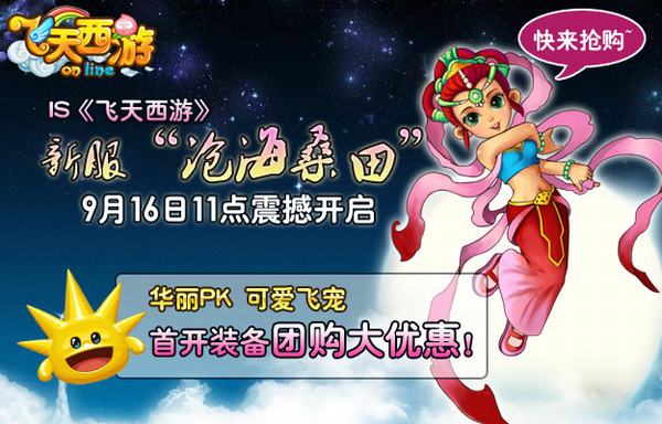 还在心动吗,赶紧加入飞天的大家庭吧!9月16日11点IS《飞天西游》新服“沧海桑田”与你不见不散!
