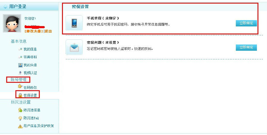 1、登录“IS游戏用户中心”,在“账号管理”中绑定手机密保。