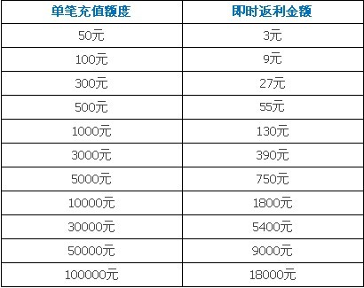 活动规则:活动期间,玩家在IS游戏内单笔充值满以下金额(以游戏内实际到账金额计),即时到账额外返利奖励!