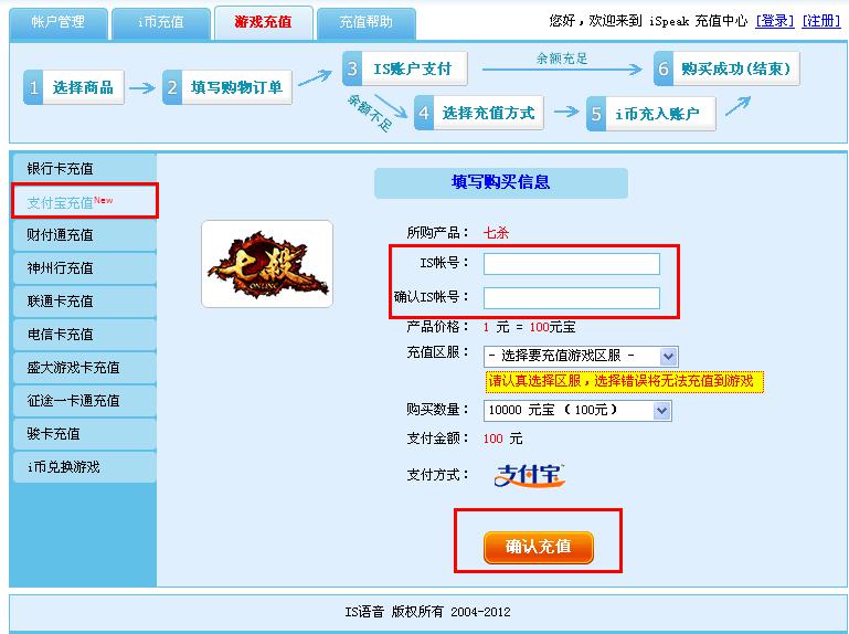 近日IS游戏平台已与国内最大的独立第三方支付平台支付宝达成合作意向,展开合作开通支付宝充值服务功能。IS游戏平台玩家提供在线充值服务。玩家只需登录官方网站的充值中心选择自己所要充值的游戏,使用支付宝即可直接完成充值。?xml:namespace>