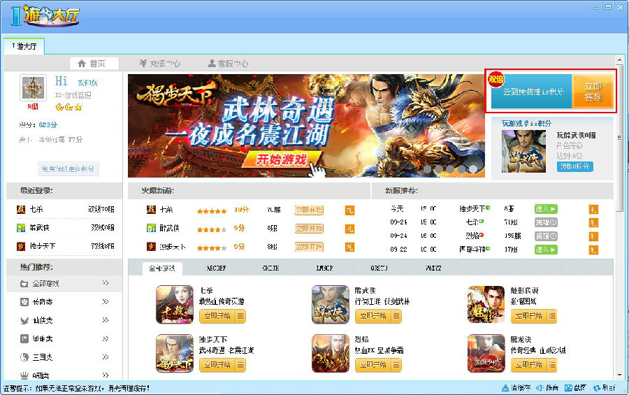 游戏大厅签到和任务位置: