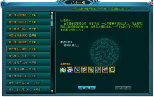 通过主界面上的八十一难图标,即可进入81难面板。