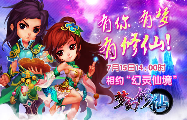 有你,有梦 ,有修仙。IS《梦幻修仙》新服"幻灵仙境"7月15日14:00开启!丰富的开服游戏活动,精彩的游戏内容,都在等待您的参与!