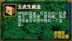 五虎生威盒*1;4级装备鉴定符*1;中级宝石袋子*1;弥陀经*5