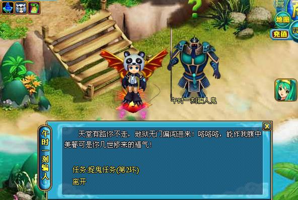 宠物经验巫妖地盘——抓小鬼,每天10次抓鬼机会,在长安城捉鬼天师“钟馗”领取任务,领到任务后相应的鬼怪就被激活,激活地点不定,可以自动寻路到达巫妖地盘,移动的时候可以乘坐飞宠。抓鬼任务59级以下可以单人进行,60级以上需要至少3人组队接取任务,击溃来犯鬼怪将获得角色经验和宠物经验,经验随着抓鬼次数增加而增加。