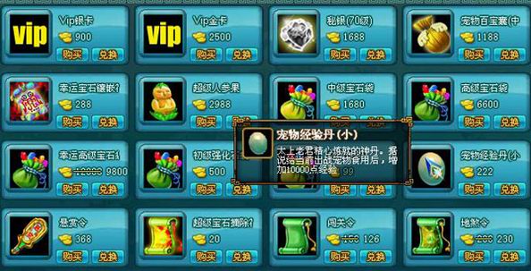 驯养神宠系列的玩家都比较想走捷径,宠物经验丹就可以满足玩家这一需求。商城中出售或者指定任务,副本掉落的宠物经验丹分为小中大三种,小型宠物经验丹可以瞬间给宠物补充10000经验,0级宠物使用一个小经验丹可直接升到20级左右。