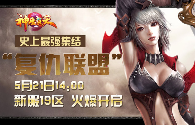来吧,新的刺激与挑战在等待您参与!IS 神魔遮天双线19服“复仇联盟”将于2012年5月21日14:00震撼开启!丰富的开区活动,精彩的游戏内容,都在等待您的参与!赶紧加入IS神魔遮天,打造一个属于你的辉煌吧!