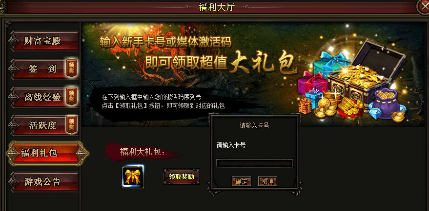 玩家在官网或其他媒体平台获得的礼包卡都可进行领取礼包奖励。