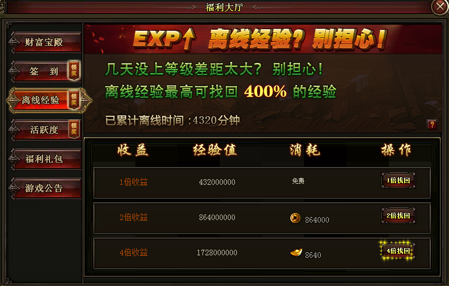 分分钟找回经验,再也不用担心几天没上和小伙伴们等级差距太大了。