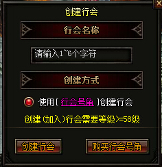 2. 点击“创建行会”按钮, 达到创建条件,输入霸气的行会名称,即可创建行会。