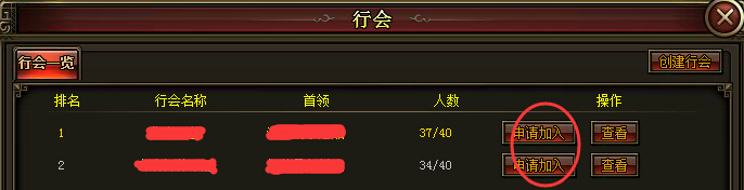 2. 在行会列表里面选中你想加入的行会