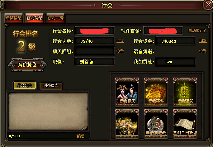 4. 行会成员通过捐款,参加行会活动等形式来获得帮贡。