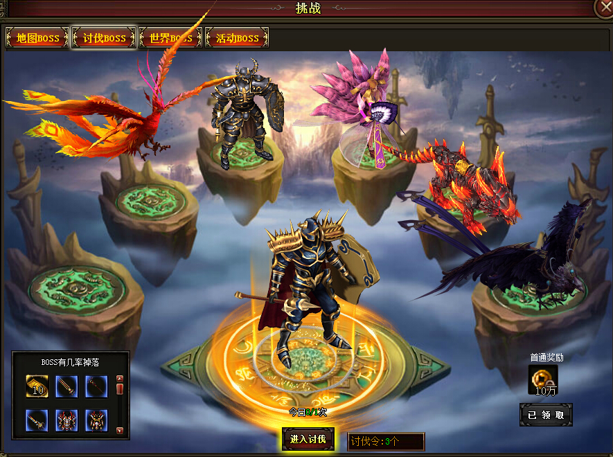 进入挑战需要消耗boss讨伐令,并有讨伐等级限制,请大家留意。