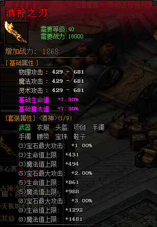 据说在《酒神》的异界大陆中散落着9件属性极强的装备,穿戴后不仅外形炫酷,属性更是叼炸天。每件都可以激活任意等级的宝珠,集齐数件更能激活牛B套装属性,如此顶级的PVP装备全服珍稀,却仅在特殊活动中产出。