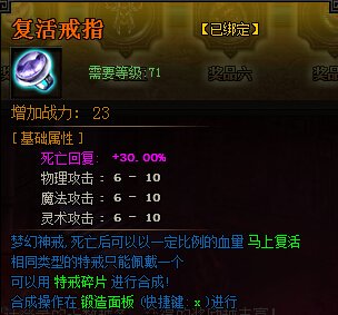 复活戒指:佩戴时角色死亡,以一定比例的血量马上复活
