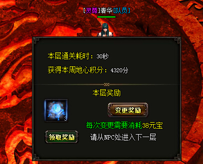 在击杀怪物之后可获得相应奖励和地心积分,副本通过NPC传入下一个场景。