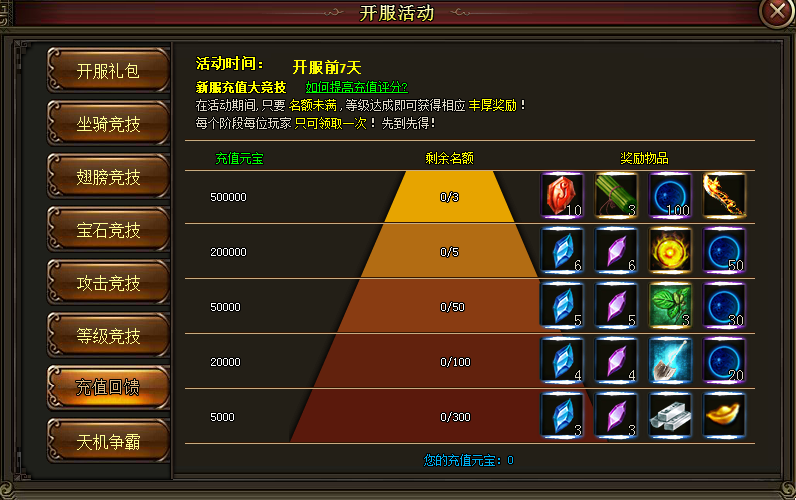 活动时间:开服前七天