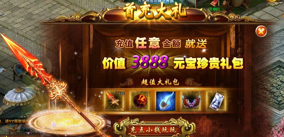 1. 玩家角色达到20级(只需5分钟即可轻松达到),即可免费领取史上超豪华首充礼包;