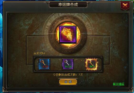 2)幸运牌合成每天次数限为10次