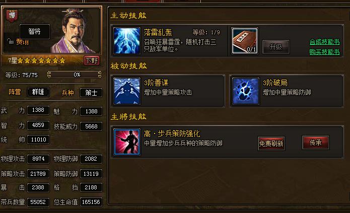 c、被动技能:战斗中始终生效,越高星级的武将被动技能越多,被动技能的等级也越高。