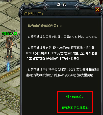 3、 跨服战场内击杀BOSS、或其他帮会玩家均可获得跨服战积分