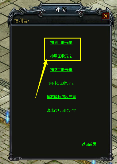 前往烈焰城(105,120)福利官NPC处回收