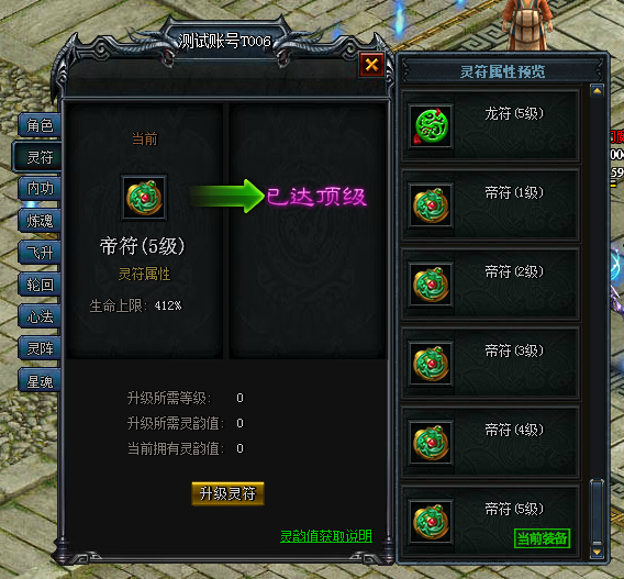 灵符在“龙符”之上再加5个级别——“帝符”系列