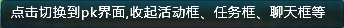 点击“PK”将会切换到PK界面,收起活动框、任务框、聊天框等