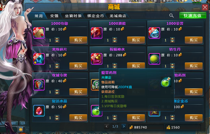 除特定活动外击杀其它玩家会增加PK值,PK值越高死亡时的掉落惩罚越重,PK值可用赎罪药剂或通过人物在线来消除