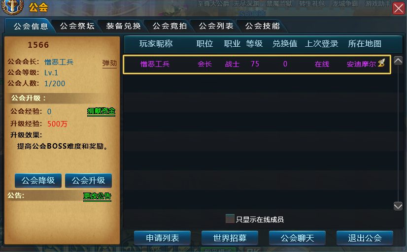 图标选择一个心仪的公会加入,如果不愿意寄人篱下当然也可以建立自己的公会成就属于自己的王图霸业,创建公会的等级要角色达到66级并需要相关道具。